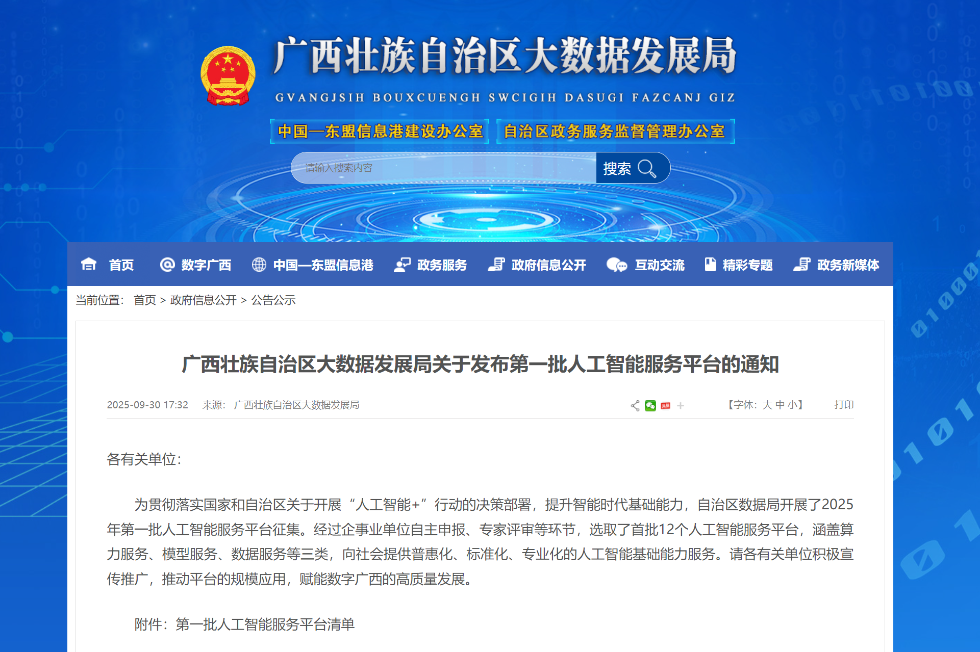 摘要:經多輪嚴格評審篩選,北部灣大數據交易平臺人工智能專區成功入選首批12個人工智能服務平臺,成為全區少數覆蓋“算力服務、模型服務、數據服務”三類核心領域的AI基礎設施之一。