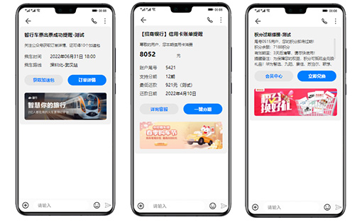 將通知信息通過卡片方式呈現,重要信息進行強化顯示,給用戶提供更好的閱讀體驗,同時提供各類點擊按鈕,能夠直接進入指定的活動頁面或者app等,實現營銷轉化。